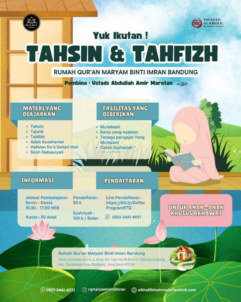 Tahsin dan Tahfiz untuk Anak ( Kelas Ikhwan dan Akhawat terpisah )